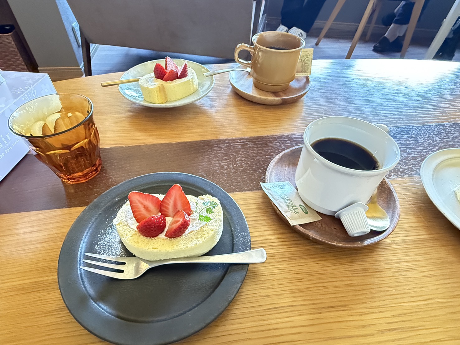 食後には、真っ赤なイチゴがのったふわふわのロールケーキをいただきました。🍓